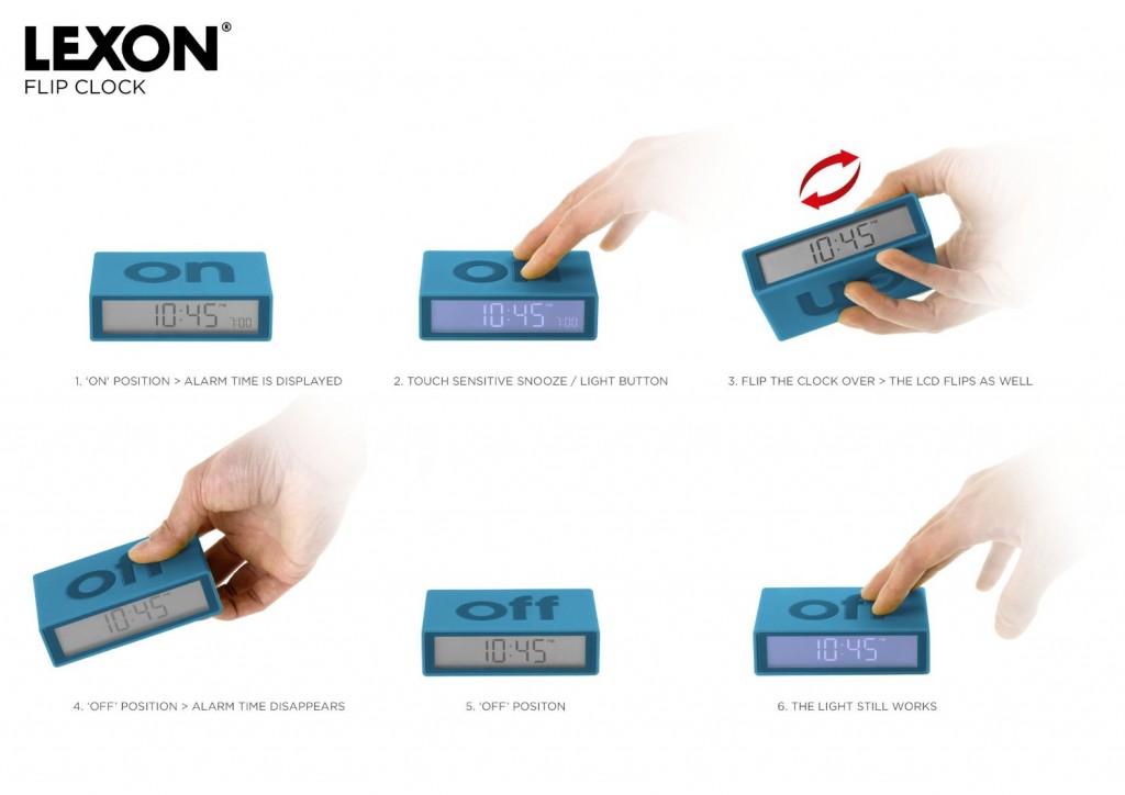 הגדולה של השעון היא בפשטות שלו: מדובר בקוביה עטופה בגומי רך, שמגיע בשלל צבעים. יש לו צד שכתוב עליו ON וצד של OFF. כדי להפסיק את הצלצול שלו, פשוט הופכים אותו, וזהו. חיישני תנועה יודעים לזהות. בשביל להפעיל שוב את ההשכמה הופכים אותו לצד הפועל.
